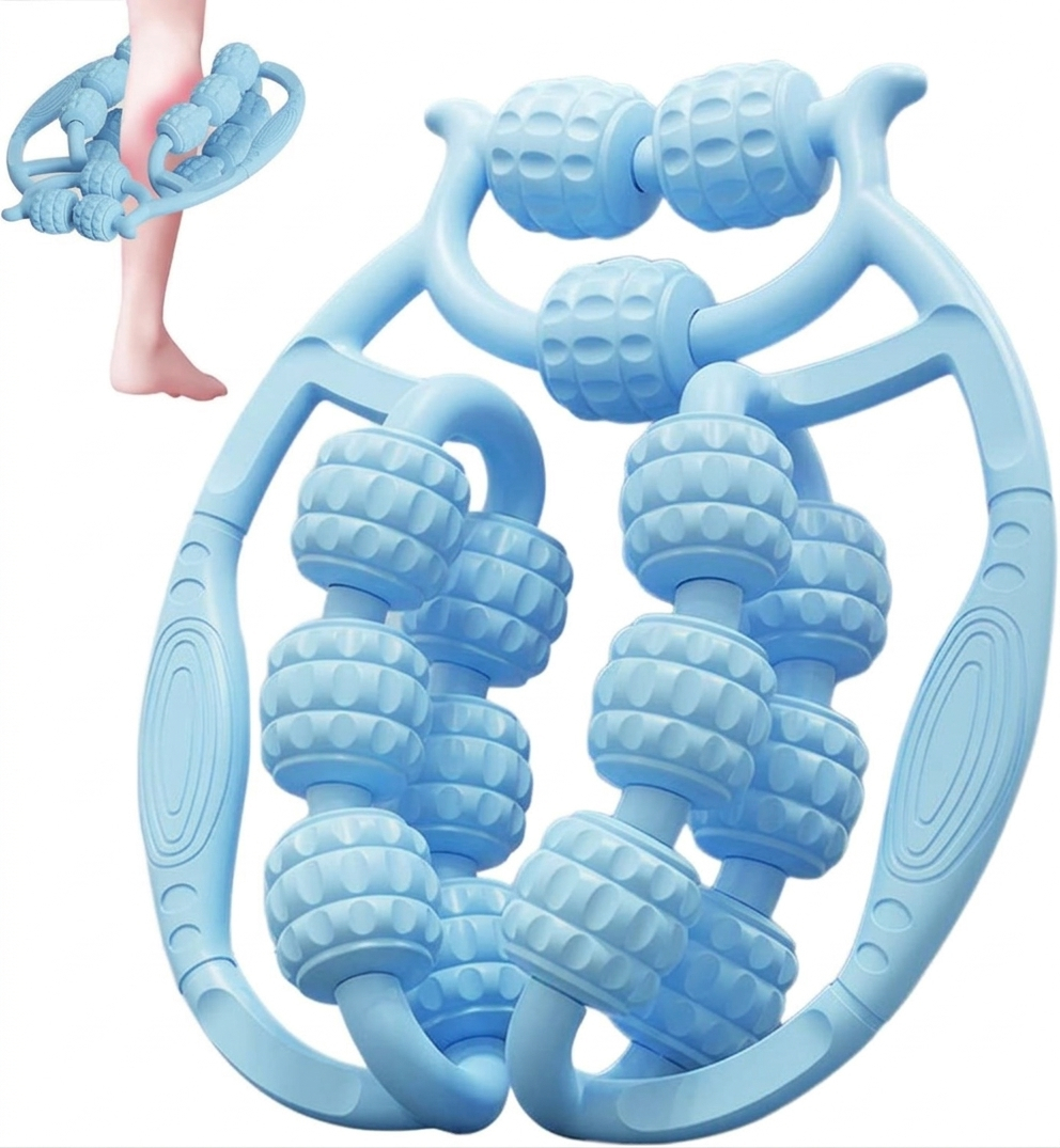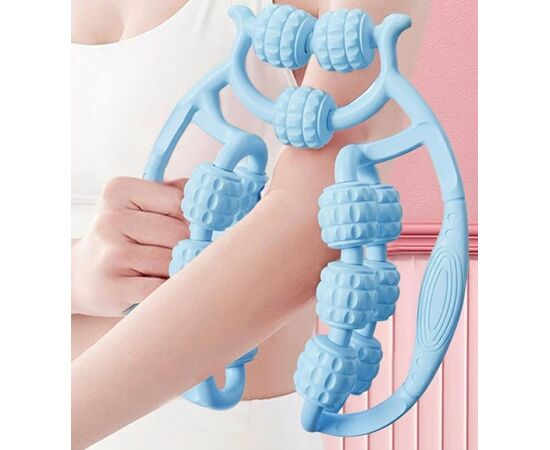 Масажер-ролик LOSSO 526 з 15 колесами для глибокого масажу тканин Блакитний