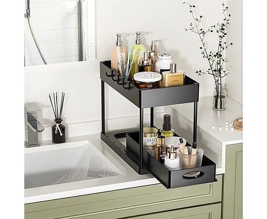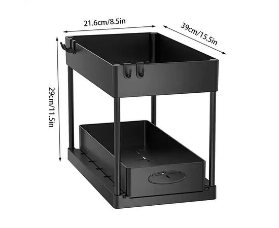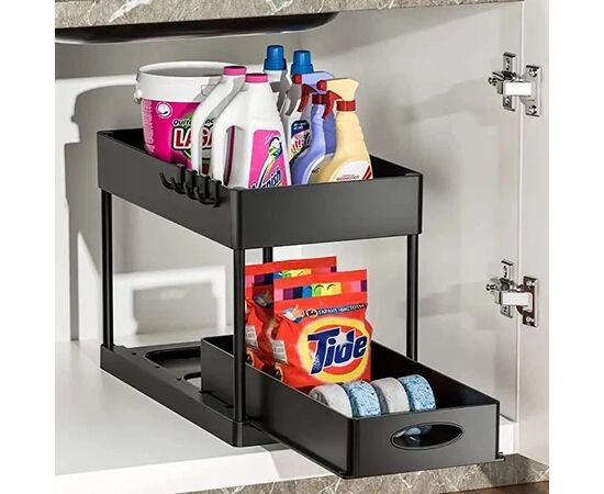 Органайзер оснащений містким висувним ящиком для зручного зберігання побутових засобів.