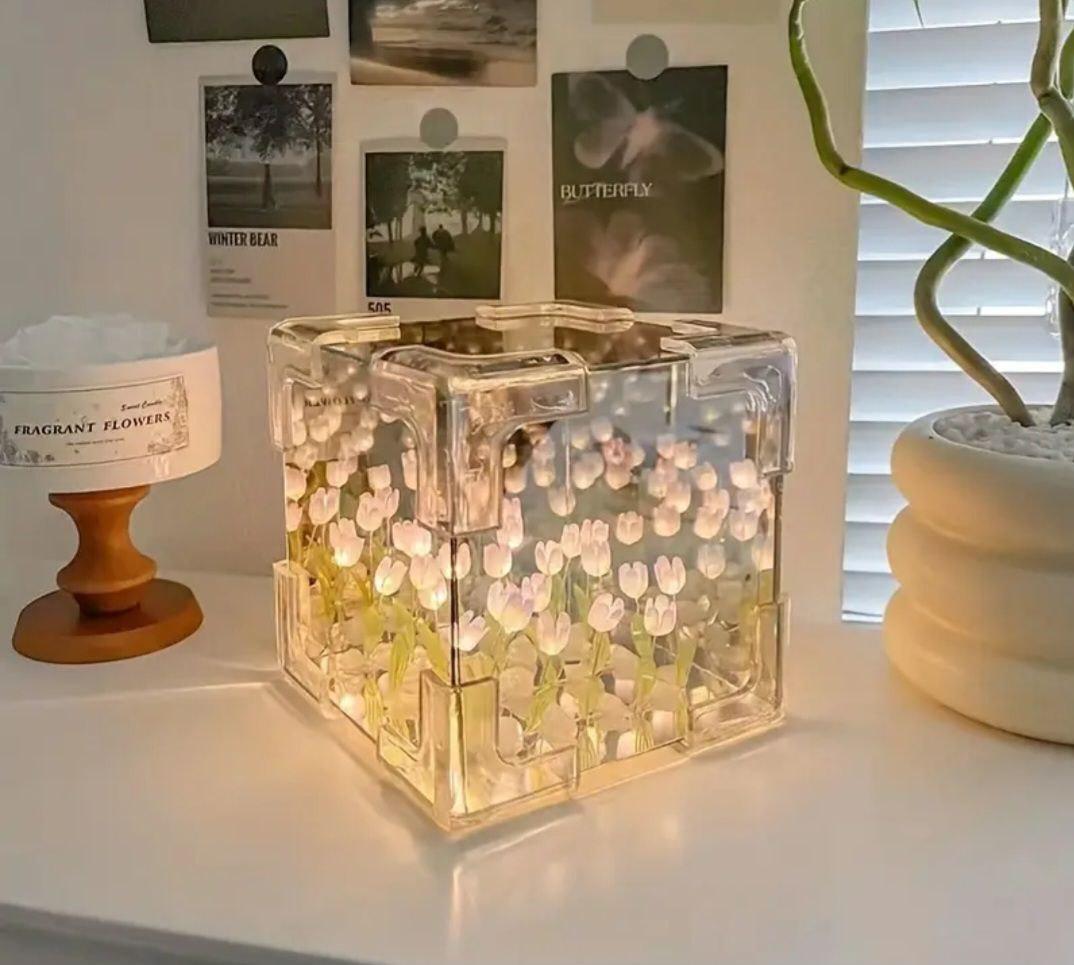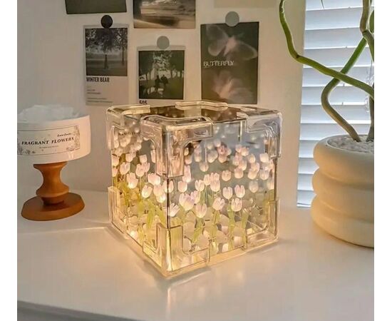 Нічник-ґірлянда «Нескінченні тюльпани» в кубі