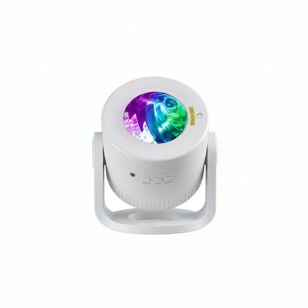 - Проектор зоряного неба поєднує мерехтливі зірки з ефектом північного сяйва, створюючи захопливу атмосферу нічного неба.