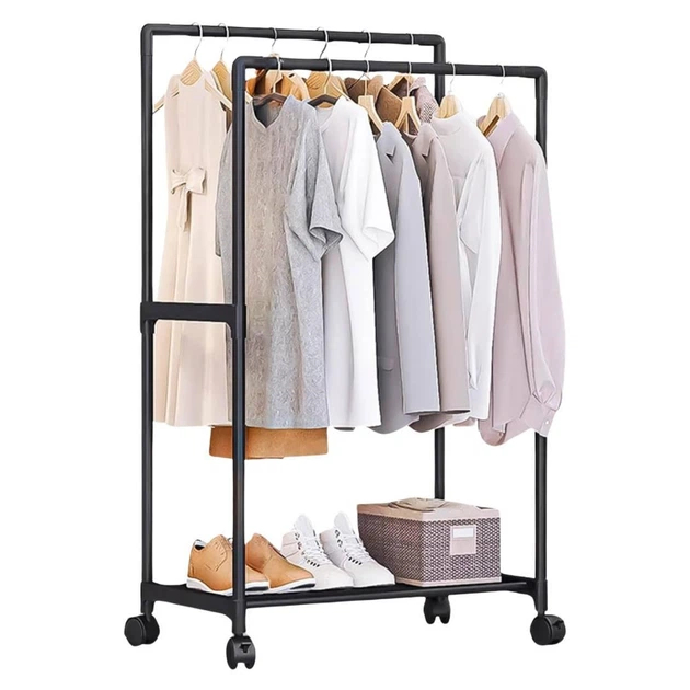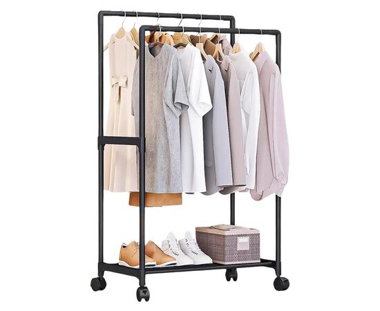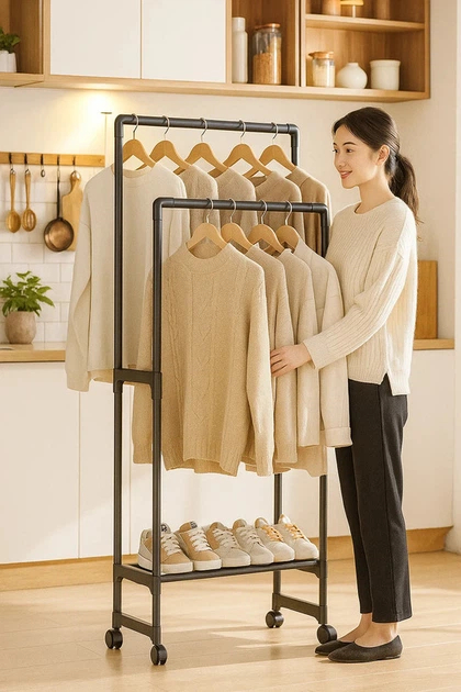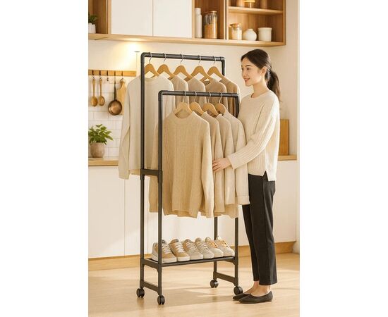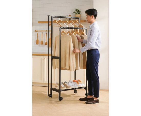 Мобільність завдяки коліщаткам, що дозволяють легко переміщати вішалку.