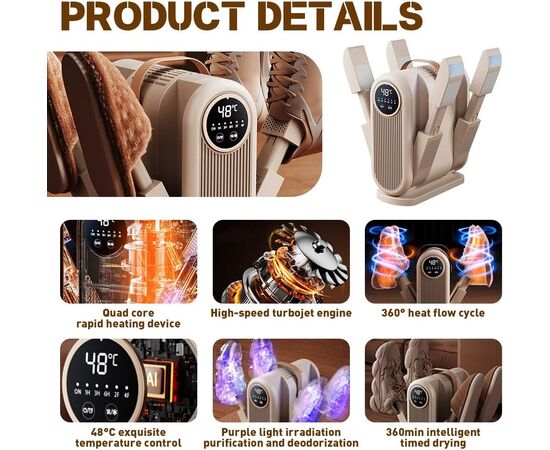 - Можливість сушити одночасно 2 пари взуття — ідеально для сімейного використання.
