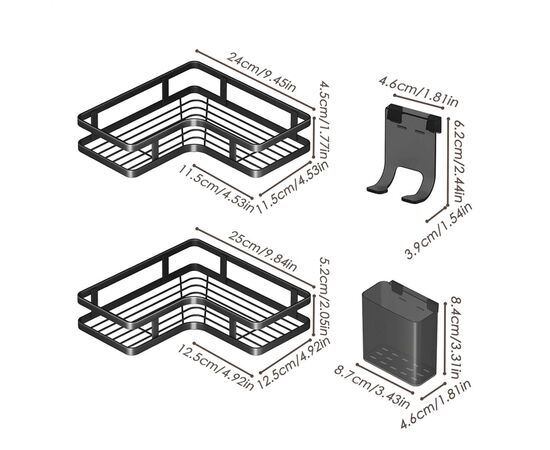Углові полиці у ванну 2 шт металеві чорні Corner shower caddy